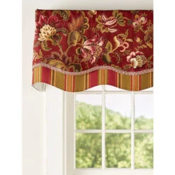 Budget βοΈ Vermont Country Store Hearthwood Floral Layered Scalloped Valance Red Floral βοΈ