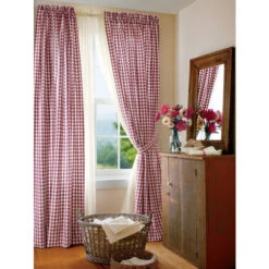 New β Vermont Country Store Moire Plaid Lined Rod Pocket Scalloped Valance Natural β€οΈ