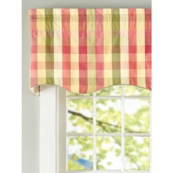 New β Vermont Country Store Moire Plaid Lined Rod Pocket Scalloped Valance Natural β€οΈ