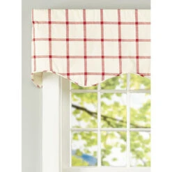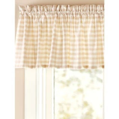 Promo π Vermont Country Store Windowpane Plaid Rod Pocket Scalloped Valance Natural π