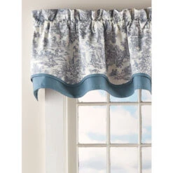 Budget 𧨠Vermont Country Store Jacobean Floral Rod Pocket Scalloped Valance Blue β€οΈ