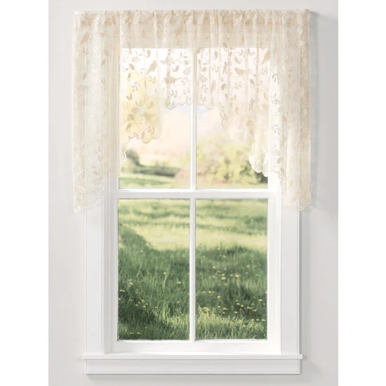 In the same garden motif as our Birdsong Lace Rod Pocket Panel and Tier, this swag brings birds, berries, butterflies, and florals to beautify any window in your home. It adds the perfect finishing touch when paired with a panel or tier and is a lovely accent when used on its own. Swag is sold in pairs.