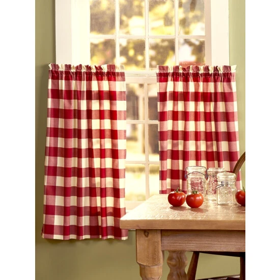 Buffalo checks are a timeless pattern that lends a bold yet casual touch to just about any room in your home. Our handsome checked curtains are made to coordinate with our Solid Duck and Ticking Stripe Curtain Collections. The bold colors are complemented by cream-colored checks. Tiers are sold in pairs.