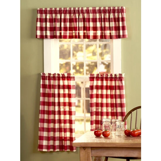 - Coordinating Buffalo Check Rod Pocket Curtains (#79210), Tab Top Curtains (#87619), M-Shaped Valance (#79019), Tailored Valance (#79020), and Scalloped Valance (#79021), sold separately