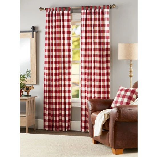 - Coordinating Buffalo Check Rod Pocket Curtains (#79210), Rod Pocket Tiers (#79018), M-Shaped Valance (#79019), Tailored Valance (#79020), and Scalloped Valance (#79021), sold separately