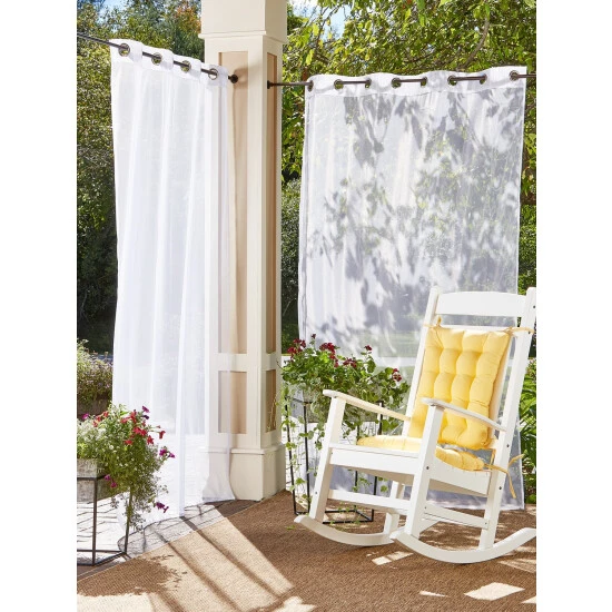 The panel is infused with Permethrin, a natural extract derived from the chrysanthemum flower that’s FDA approved and effective at repelling bugs and mosquitos. It’s also treated to repel water, mold, and mildew, and to be resistant to damage from UV rays. The sheer panel also allows sunlight and breezes to filter through for a cool, bright, bug-free space. Finished with a weighted bottom hem to keep the panel in place. Panel is sold individually.