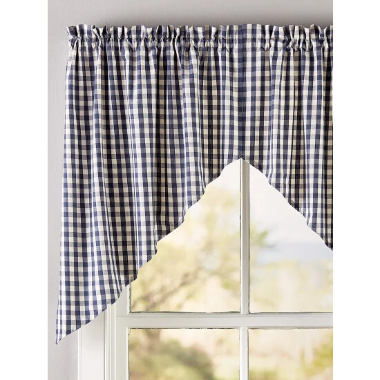 With colorful cotton checks on a creamy white background, these woven swags impart a bright, warm provincial feeling, similar to that found in a well-appointed cabin. And since the swags are yarn-dyed, they’ll keep their everyday good looks for years to come. Swag is sold in pairs.