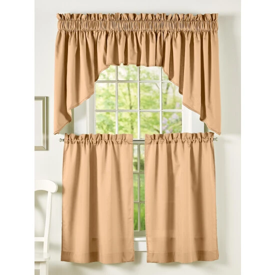 If you love the simple lines of our Jane’s Plain Curtains but would like to add some color to your decor then you’re going to love our Carolyn’s Colorful Collection. They feature the same simple style and quality craftsmanship in a range of colors designedto complement your decor. All styles are made of an easy-care cotton and polyester blend,which means you can just toss them in the washer to keep them looking their best. Swags are finished with a 5″ ruffle and sold in pairs.