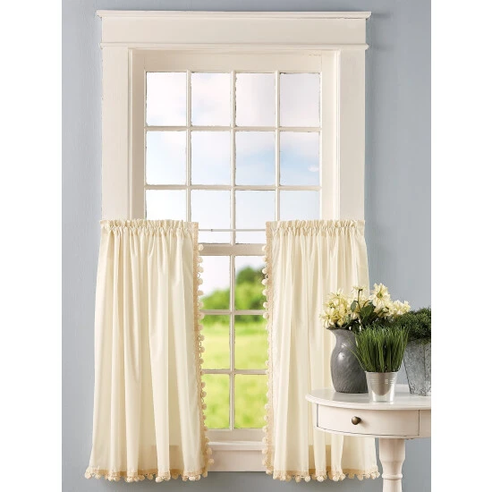 Always in style and always a favorite, these tiers bring cheery vintage style to any room. They’re made of premium woven polyester and cotton, which washes like a dream and hangs beautifully. But the sweet ball-fringe “pompom” trim will steal your heart. This simple addition will add endless charm to any room you hang them in. Tiers are sold in pairs.