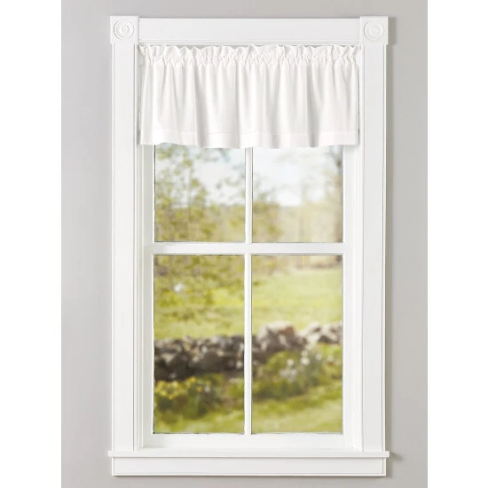 Simplicity at its most beautiful! This soft,elegant insert valance is finished with open-needlework hemstitching along the hem. Mid-weight cotton ensures a beautiful drape and makes this valance easy to care for, too. And because it’s an insert valance, it’smade to fit between curtains, tiers or swags or can be used on its own for a simple classic look. Valance is sold individually.