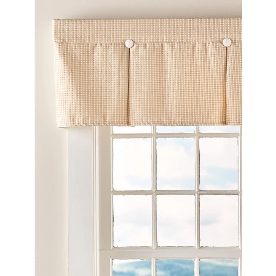 Our Colebrook Check valance has a subtle woven check accented with raised dots for a simple yet sophisticated look. The subtle complementary colors are easy to mix and match with our other curtain styles, too.Valance is sold individually.
