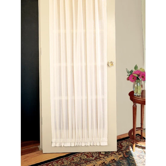 Frame your door with the light-diffusing elegance of cotton voile. This semi-sheer voile door panel adds a decorative touch and also provides a moderate degree of privacy. The light filtering panel is a great solution on its own and also matches our Cotton Voile Curtains and Tiers for a coordinated look.Door panels are sold individually.