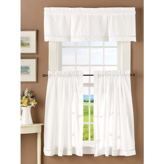 These pretty tiers are made of our smooth woven cotton and feature a unique crocheted lattice design that frames the curtains on three sides. Just that little detail adds timeless charm and appeal and dresses up your windows beautifully. Tiers are sold in pairs.