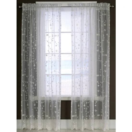 The allover floral embroidery adds charm and beautiful detailing to these curtain panels. The panels drape softly while allowing light to beautifully filter through the finely woven fabric. Use alone or dress up with the matching valance, swag, or balloon panel. Panels are sold individually.