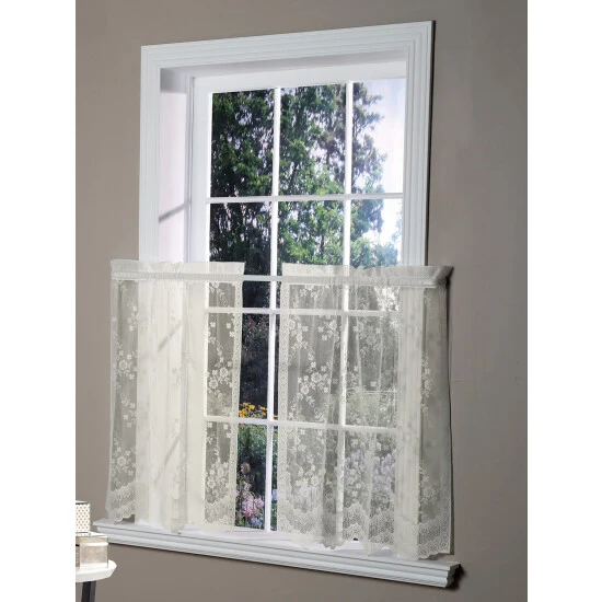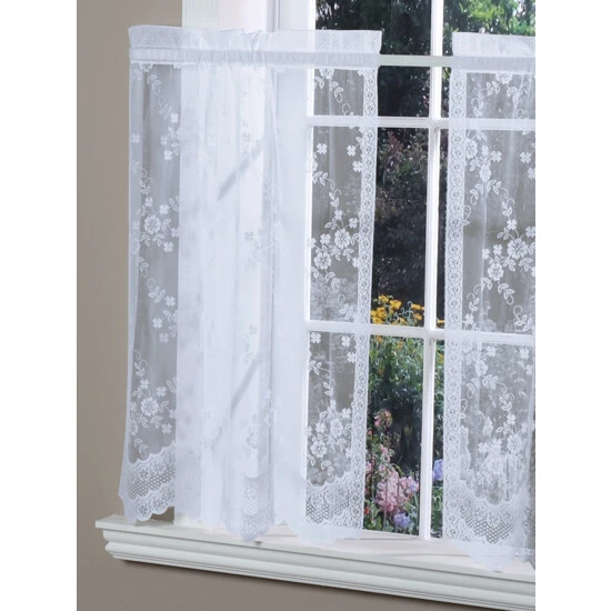 The delicate floral embroidery is like having dozens of lacy bouquets suspended in mid-airโwhat a beautiful way to frame the windows of any room! These romantic tiers are woven with durable polyester, which means they are easy to care for and will last for years. They have a soft, flouncy drape that falls gracefully to a scalloped hem. Tiers are sold in pairs.