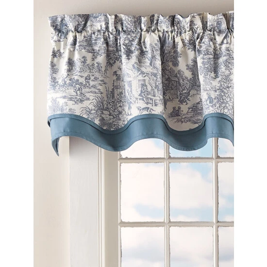 When you put two layers of fabric togetherβlike our traditional French toile and solid color twillβit creates a classic layered Bradford-style valance. A Bradford valance adds a touch of style to your windows when used on its own and a complete look when paired with the coordinating curtains in our Essex Check Curtain Collection. Valance is sold individually.