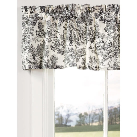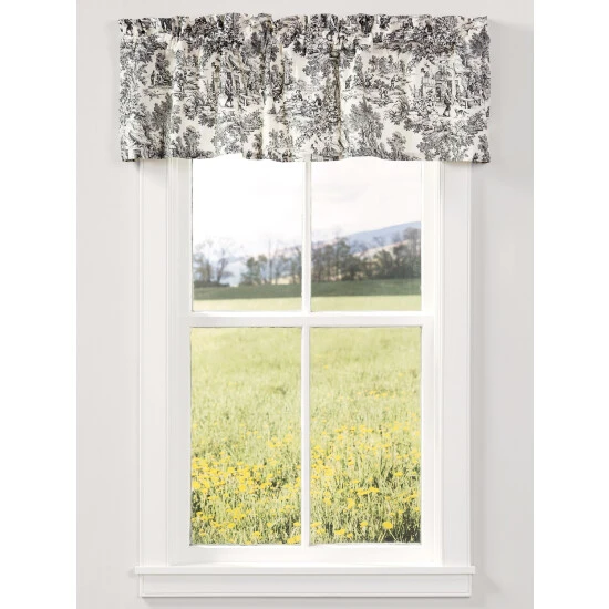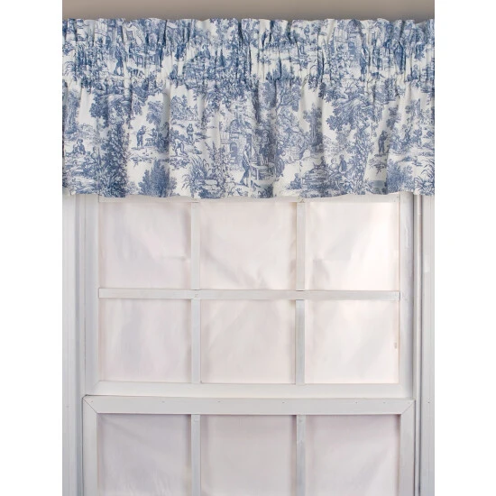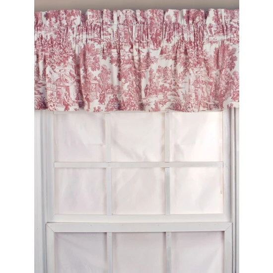 This classic French toile pattern lends a traditional look to your decorβa timeless look that you will enjoy for many years to come.Use this tailored valance on its own or with the coordinating tiers and curtains. Valance is sold individually.
