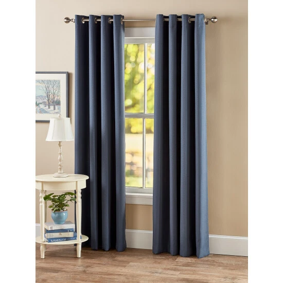 Whether you choose our room-darkening curtains for privacy, light sensitivity, energy savings, or all of the above, they’re a game-changer for making your home as comfortable as possible. These curtains are specially woven on Jacquard looms and feature three layers to help keep out light, cold, and heat. The Jacquard weave also creates a beautiful texture of vertical raised dots on the outer layer that lends a sophisticated touch to any decor. Curtains are sold in pairs.