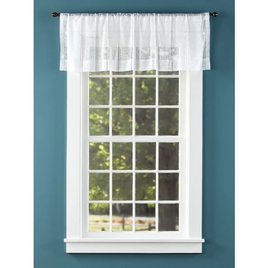 This semi-sheer valance features an all-over lace design woven with a classic medallion motif. The soft lace fabric drapes beautifully to frame your windows with the romantic look of light and airy lace. Valance is sold individually.