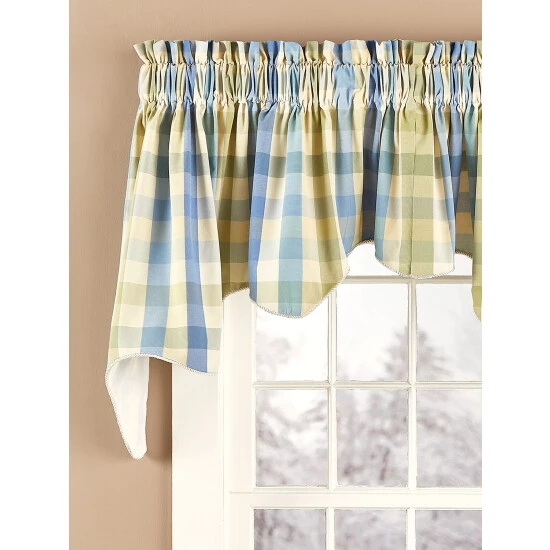 - CoordinatingMoire Plaid Rod Pocket Curtains (#78501), Rod Pocket Tailored Valance (#78502), and Rod Pocket Scalloped Valance (#85926), sold separately