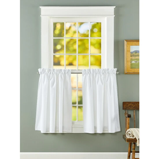 These soft neutral tiers are woven of midweight cotton with a delicate linen textureβand feature picot hobnail trim for added charm. The neutral colors and simple design make these curtains a good choice for any room in your home. Tiers are sold in pairs.