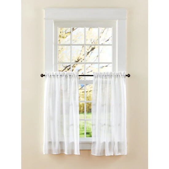 These lightweight tiers are sheer enough to let light filter in while offering a level of privacy, as well. The luxurious, yet, casual fabric blends the classic textured look of linen with the durability of polyester. Finished with all-around hems and pre-washed for a soft drape. Tiers are sold in pairs.