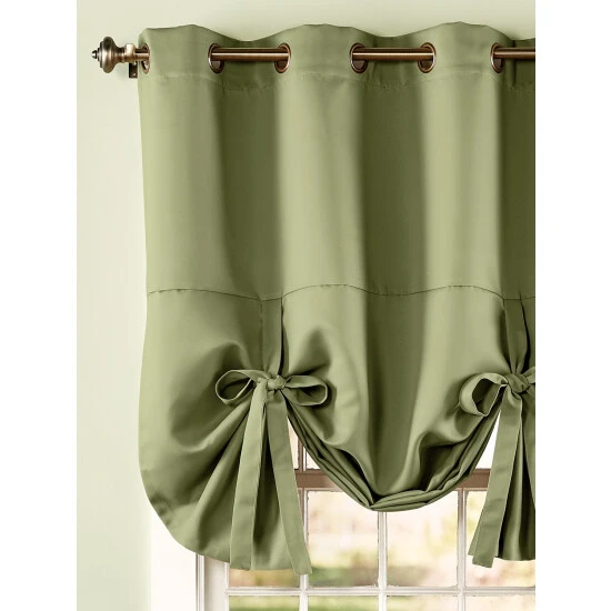 This heavy-duty valance is designed to bring a soft beauty to your windows as well as provide a barrier to block out the cold in winter and the heat in the summer. The thermal fabric is made with a special triple-weave construction technique that weaves black threads with colored yarns to block out light and insulate against heat and cold. The valance is professionally tailored with all-around hems and two adjustable ties.Valance is sold individually.
