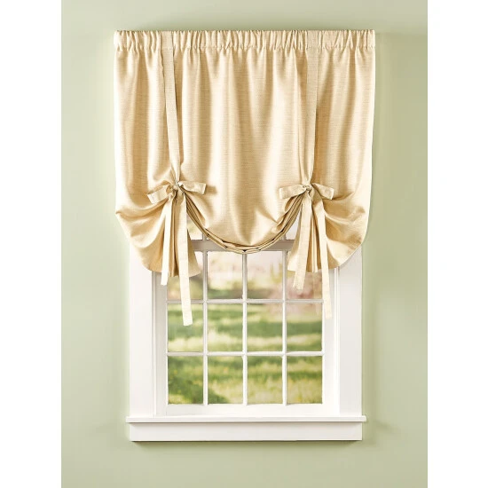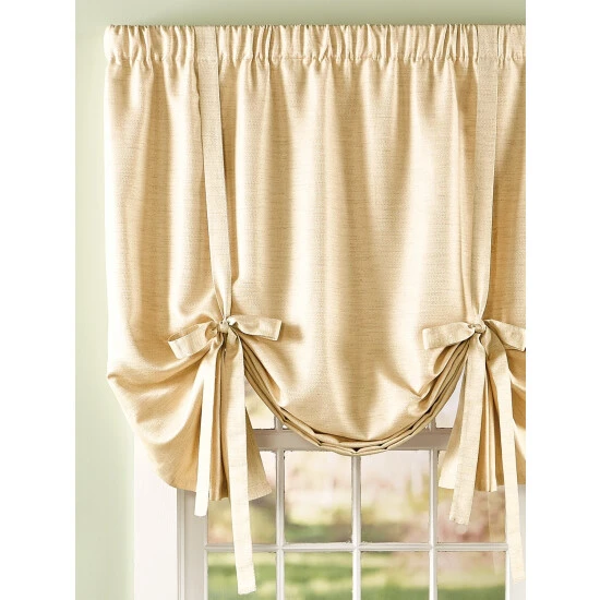 - Tie-up valances are made to fit across the window area/curtain rod. When ordering a tie-up valance, select a valancethat’s wide enough to cover the width of the window area or curtain rod. Tie-up valances work on decorative or continental rods, if using a continental rod, you’ll need to include the side returns in the total width.