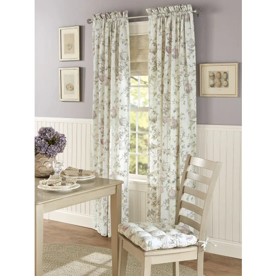 Everyone loves a summer garden! And no garden is complete without big, beautiful hydrangeas abloom in soft blues, pinks, and creams. The same billowing blooms grace our Whispering Hydrangeas Curtain Panels and the fresh floral print will bring vintage-inspired charm to your windows. The fabric is a soft blend of polyester and cotton, which means it drapes beautifully and washes and dries like a dream. Curtains are sold in pairs with two tiebacks.